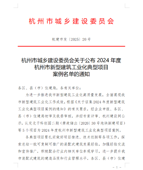 近日,杭州市建委發布《關于公布2024年度杭州市新型建筑工業化典型項目案例名單的通知》,北干科創園二期項目憑借其工業化建造模式與技術創新實踐,成功入選并獲通報表彰。作為蕭山區重點產業平臺,該項目正以“科技+智造"雙輪驅動,加速打造長三角智能制造產業新標桿。