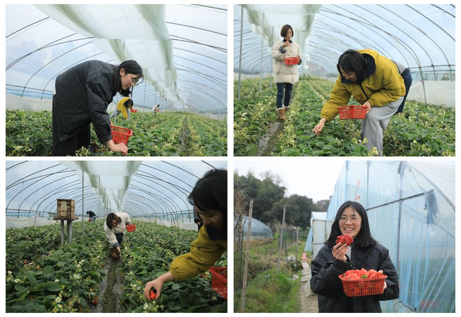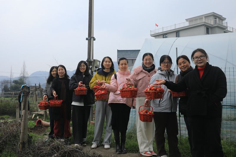女職工們手提小籃,穿梭在田壟間,一邊采摘,一邊交流,歡聲笑語不斷,盡情享受著田園采摘的樂趣。采摘結束后,大家還品嘗了新鮮的草莓,并合影留念,記錄下這美好時刻。