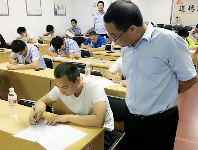 為積極做好蕭山區2017年度大客車維修技能比武參賽人員的選拔工作,8月3日晚,長運修理分公司組織維修技術人員在西站二樓會議室開展了技術比武的理論摸底考試。公司副總經理、修理分公司經理潘國華現場親自進行了觀摩和指導。本次技術比武理論摸底考試以機修工種為主,共計34名員工參加。接下來,修理分公司還將繼續進行實踐操作考試的選拔,符合條件的員工將正式參加蕭山區2017年度大客車維修技能的比武。